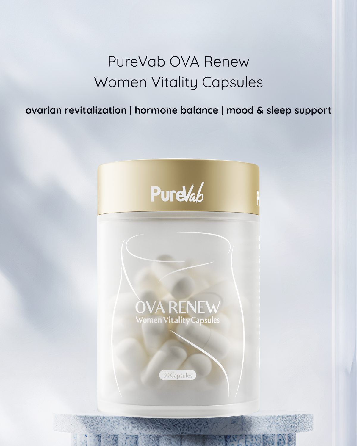 Supports Female Reproductive Health. Mood Balance. Ovary Function. PureVab™ OVA Renew Women Vitality Capsules are your key to nurturing ovarian health and unlocking enduring feminine vitality. This powerful supplement revitalizes declining ovarian function, balances hormones, and reverses the signs of feminine aging—helping you reclaim youthful energy, smooth curves, and emotional harmony.
